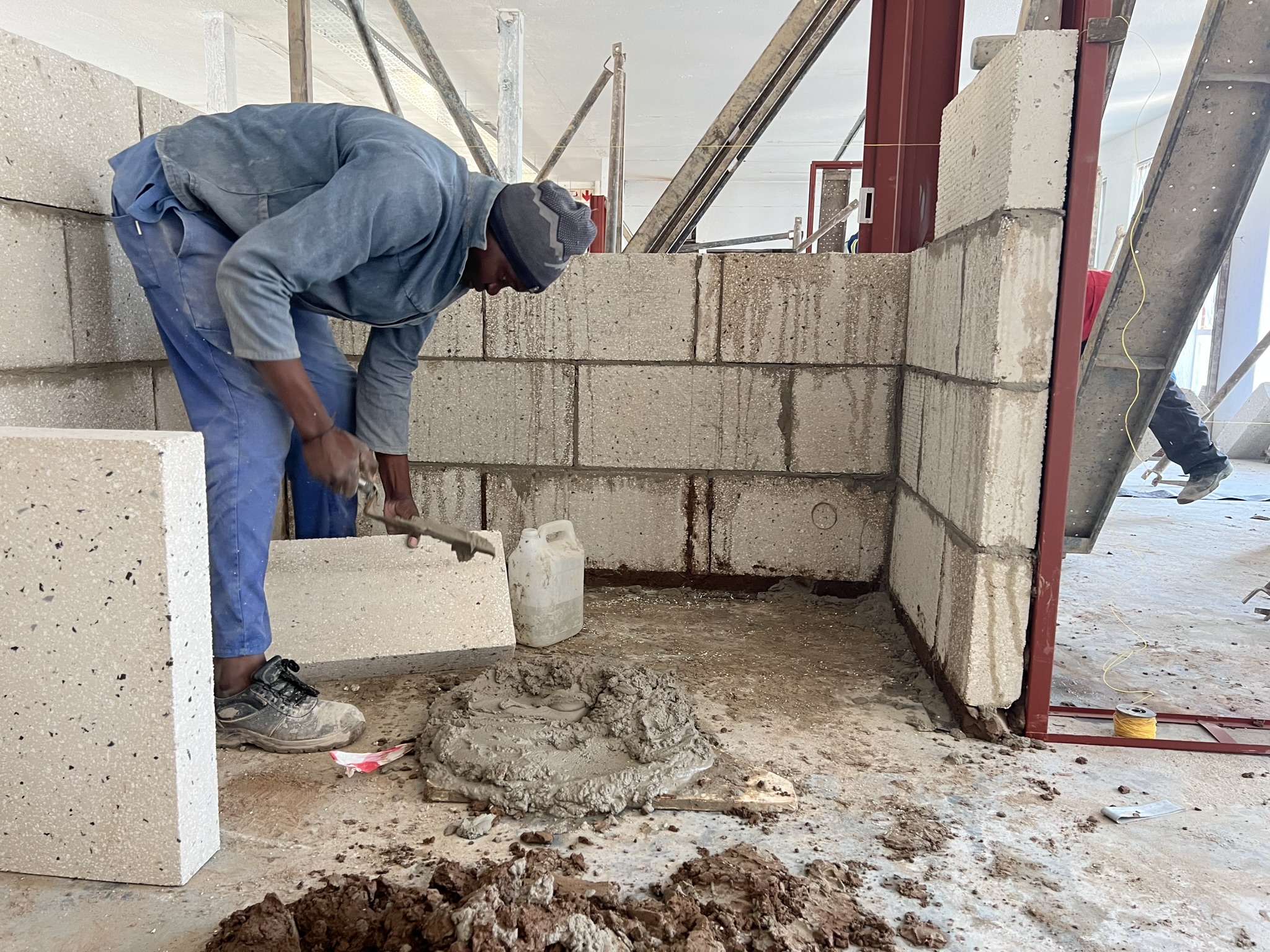 construction times are reduced with a corresponding decrease in labour, project management and financing costs. A standard brick laying team can lay at least 5 times more m2 than a team building with conventional brick and mortar.